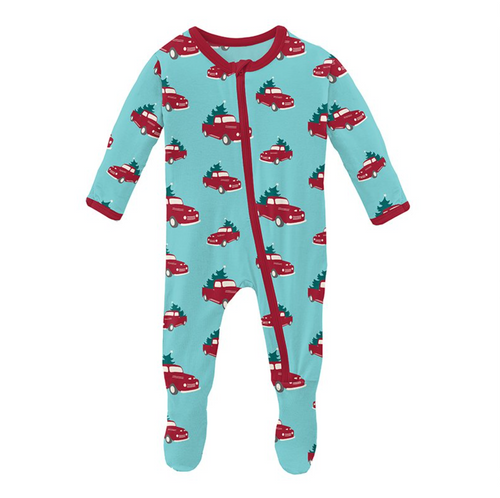 Iceberg Trucks and Trees Print Footie with Zipper