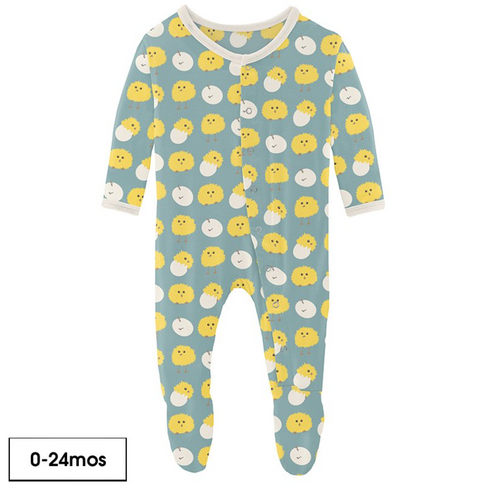 Print Classic Ruffle Footie with Zipper in Natural Hydrangea