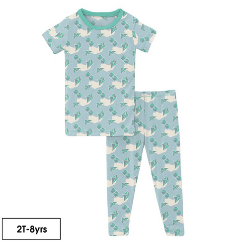 Print Short Sleeve Pajama Set in Windy Day Kites
