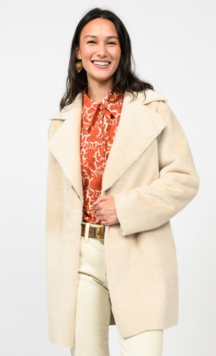 Faux Fur & Suede Jacket in Cream