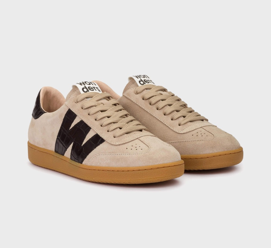 Sneakers NUBIA 01 crafted in a mix of beige suede and black croc-embossed leather details. This timeless design features a classic silhouette, a contrasting side “W” logo, and a caramel-coloured rubber sole that offers flexibility and casual style. The lace-up fastening and reinforced toe create an urban, versatile, and characterful look. The removable MemoryGel insole adapts perfectly to the foot, ensuring comfort with every step. #madewithloveinSpain. Wonders is committed to responsible manufacturing certified by LEATHERWORKINGGROUP.