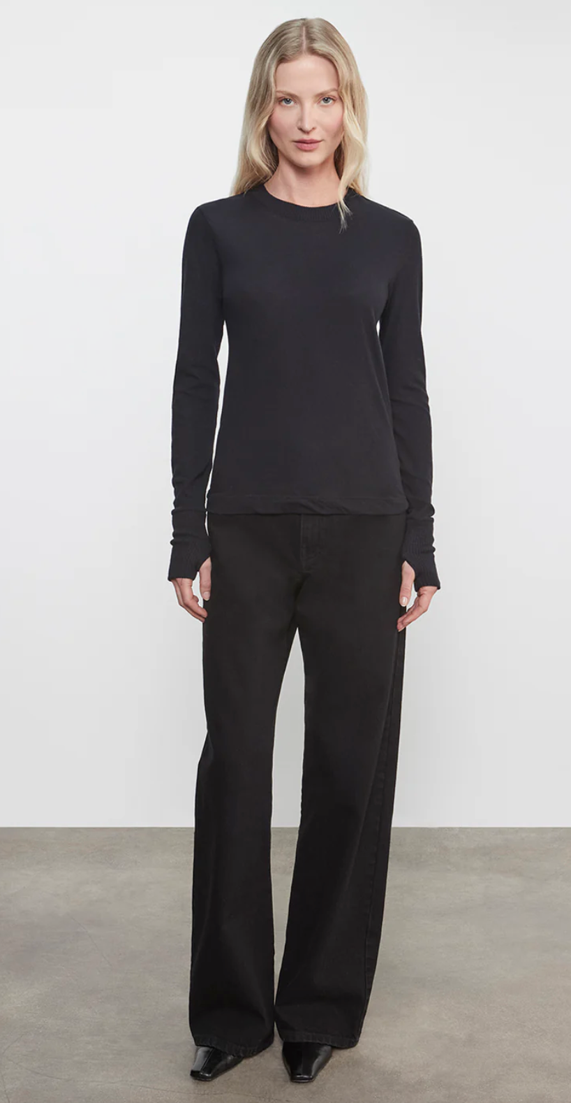 Elevate your everyday wardrobe with this luxurious long-sleeve top crafted from sumptuous cashmere jersey. The relaxed, easy fit moves with you throughout your day, while the classic crew neckline offers timeless versatility. Thoughtfully designed thumbholes keep sleeves in place and add an extra layer of comfort and warmth. Perfect for layering or wearing solo, this piece delivers the softness and sophistication you deserve. Experience the difference premium cashmere makes.