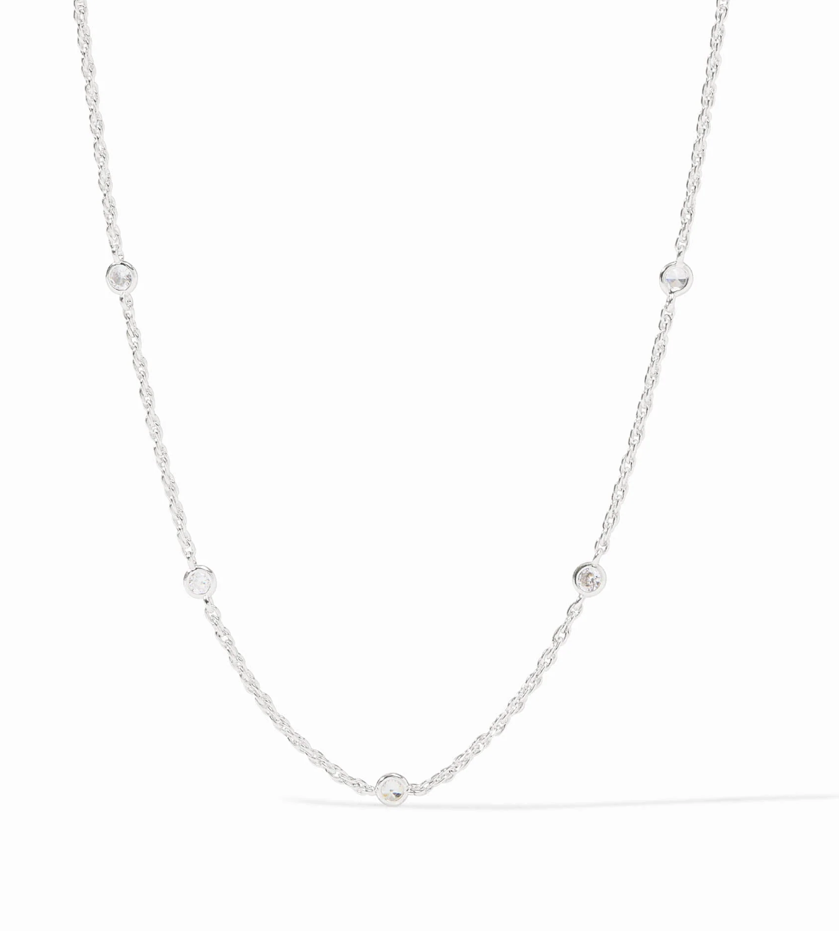 Add a touch of charm to your everyday look with the Celeste Delicate Station Necklace in Silver. This pretty, lightweight piece is perfect for layering or wearing solo, making it a must-have for those who love subtle sparkle. Its delicate design adds just the right amount of shine to brighten any outfit, effortlessly blending elegance with everyday ease.