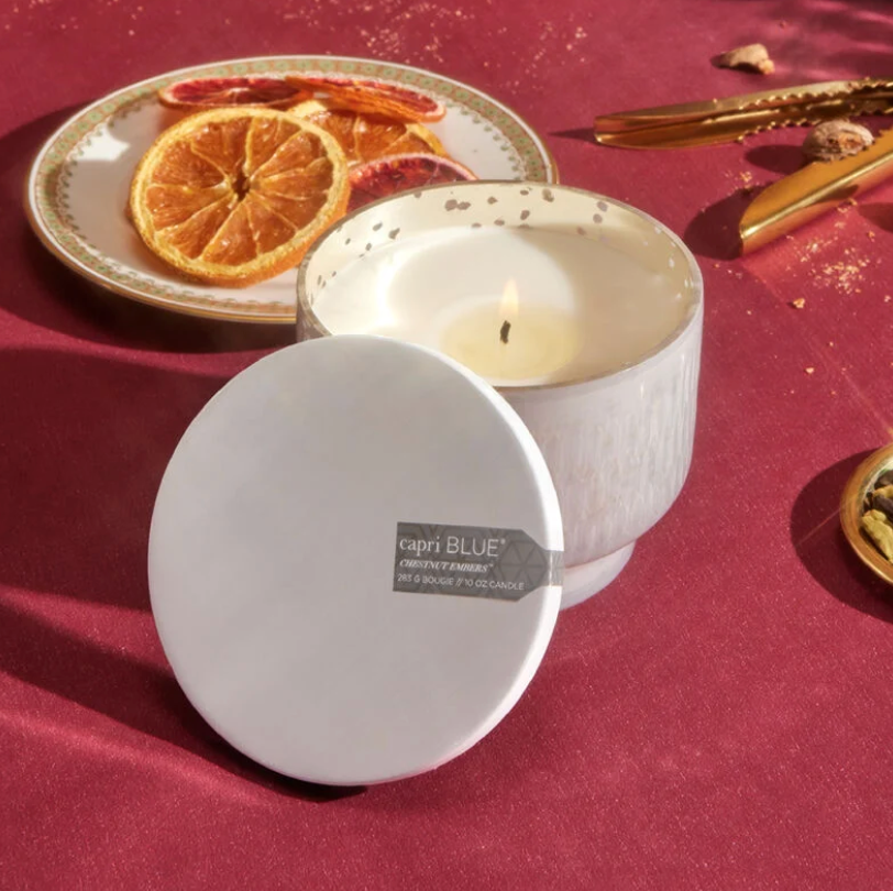 Presenting our Chestnut Embers Holiday Mercury Inverted jar. This beauty features a mercury pearl etched finish and will fill your space with notes of roasted chestnut, bitter orange, black cardamom, tonka bean and ember musk. Whether you're hosting a party with friends or cozying up to a movie, this candle will fit the scene perfectly.