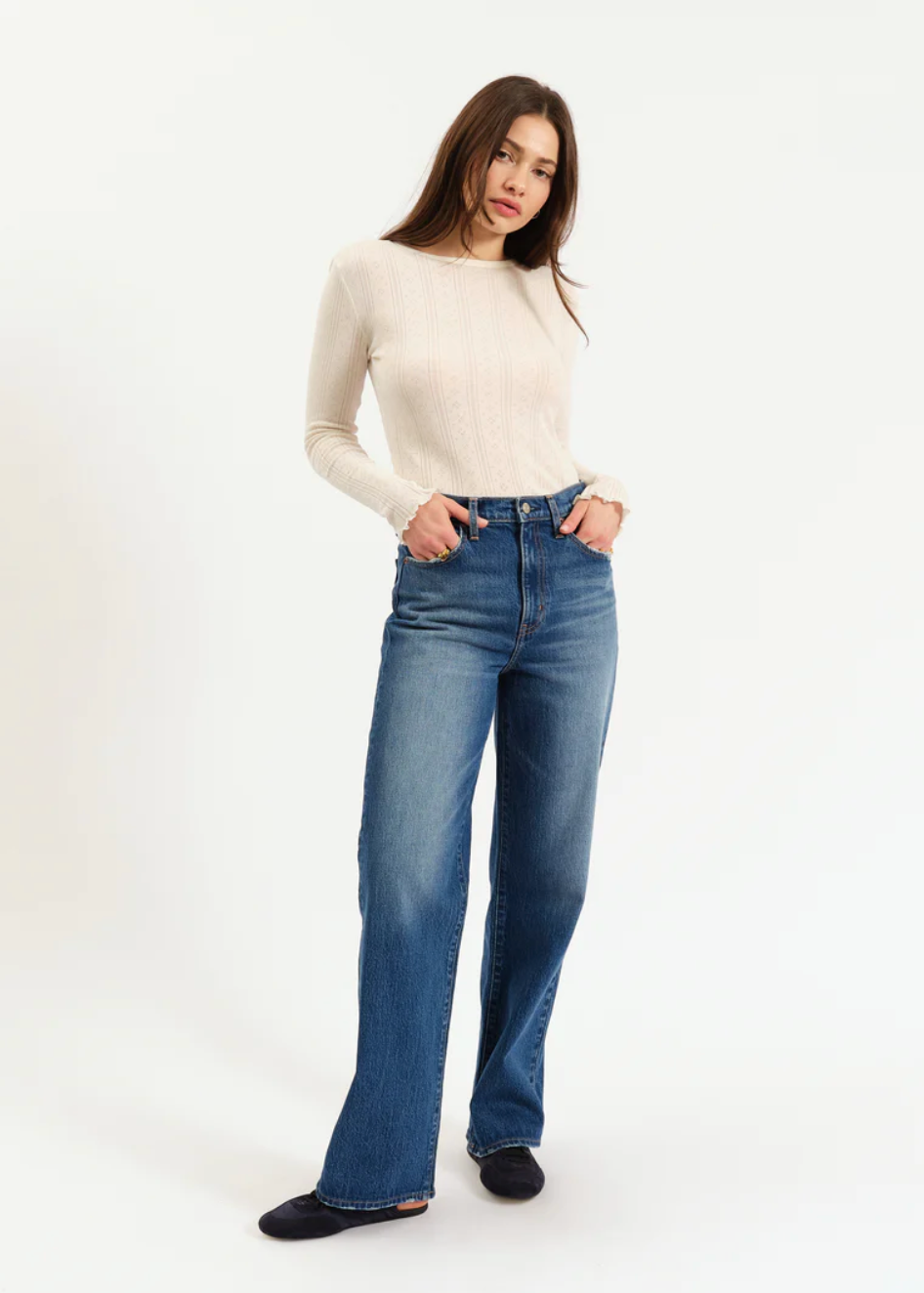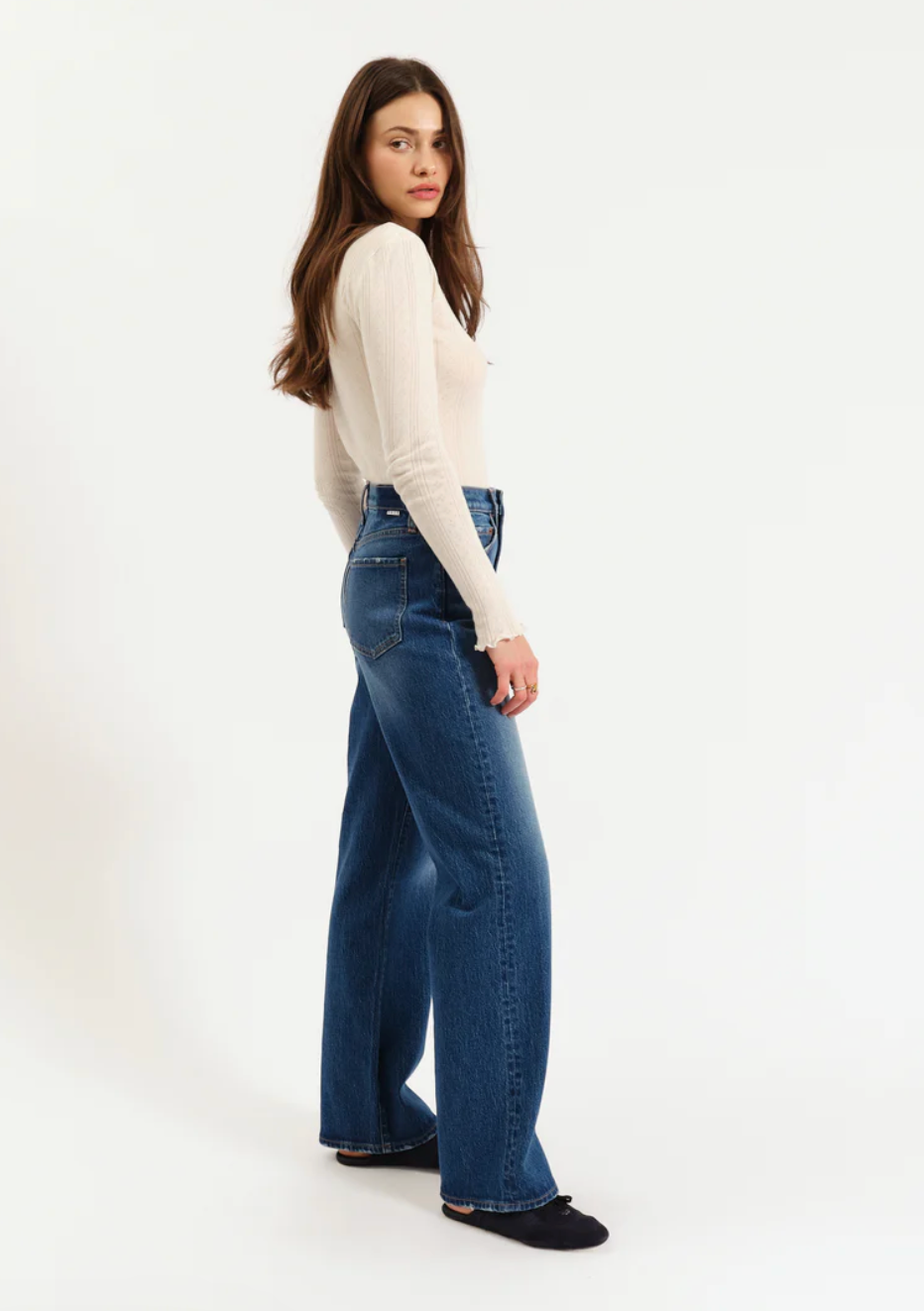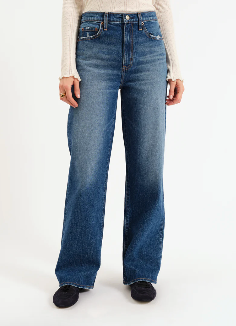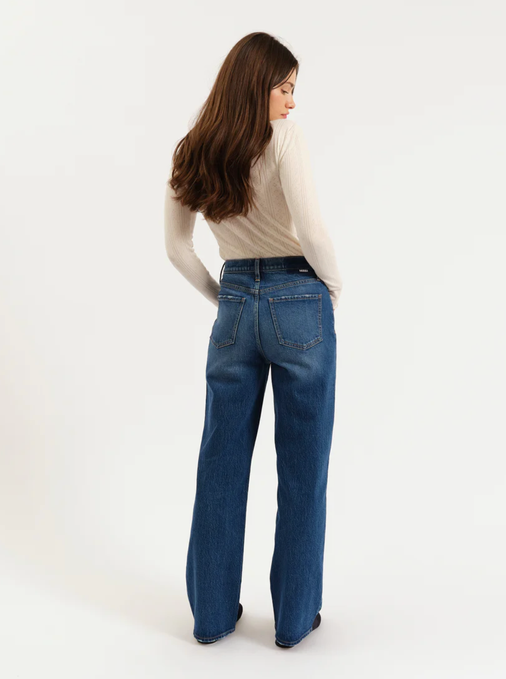 The City Straight in Bright Blue is a high rise straight leg jean in a timeless dark blue wash. Gently frayed hems and straight lines make this a versatile jean for any occasion. Constructed from our Tough Love fabric, this pair is mostly rigid but yields to your body in all the right ways.