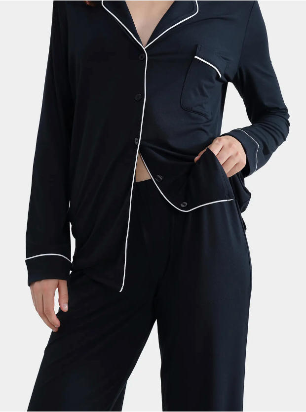 Slip into ultimate comfort with our Cooling Modal Long Pajama Set in Maritime Blue. Crafted from lightweight modal fabric, this set delivers a soft, breathable feel that keeps you cool throughout the night. The smooth material drapes beautifully while providing the gentle support you need for restful sleep. Perfect for warm nights or year-round wear, this essential pajama set combines style with performance. Experience the difference quality sleepwear makes—your best night's sleep awaits.