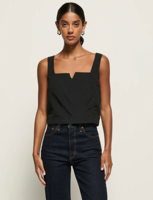She’s versatile and comfortable, introducing the Crista Square Tank. Featuring a poplin cotton fabric, this tank includes a cropped boxy silhouette, notched square neckline, and bra-friendly straps. We like to pair it back to the Ava Skirt for a set. This one comes in Jet Black.