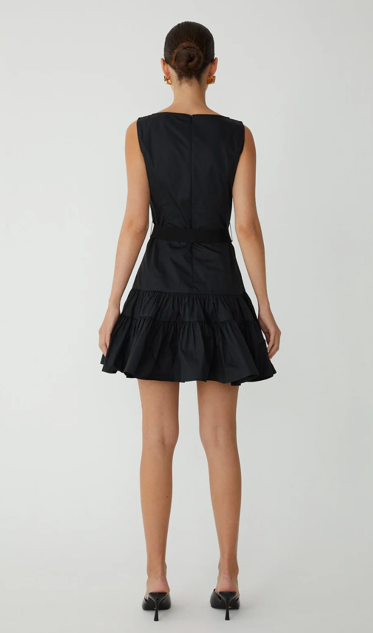 Meet the Daphne Dress—your spring essential that combines understated elegance with eye-catching details. The classic boat neckline offers a refined, polished look, while the double-layered ruffle hem brings texture and visual interest to every step. Cinched with an elastic belt featuring a striking gold buckle.