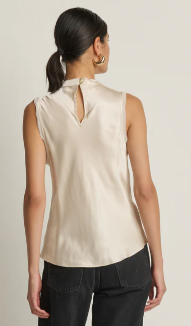 Minimal yet memorable, the Delilah Tank brings a refined edge to any wardrobe, made of hammered satin in our classic signature fit. A cowl neck, raw edge finish, and button-back keyhole closure add soft structure to this sleeveless silhouette—one you’ll want to keep on well after hours.