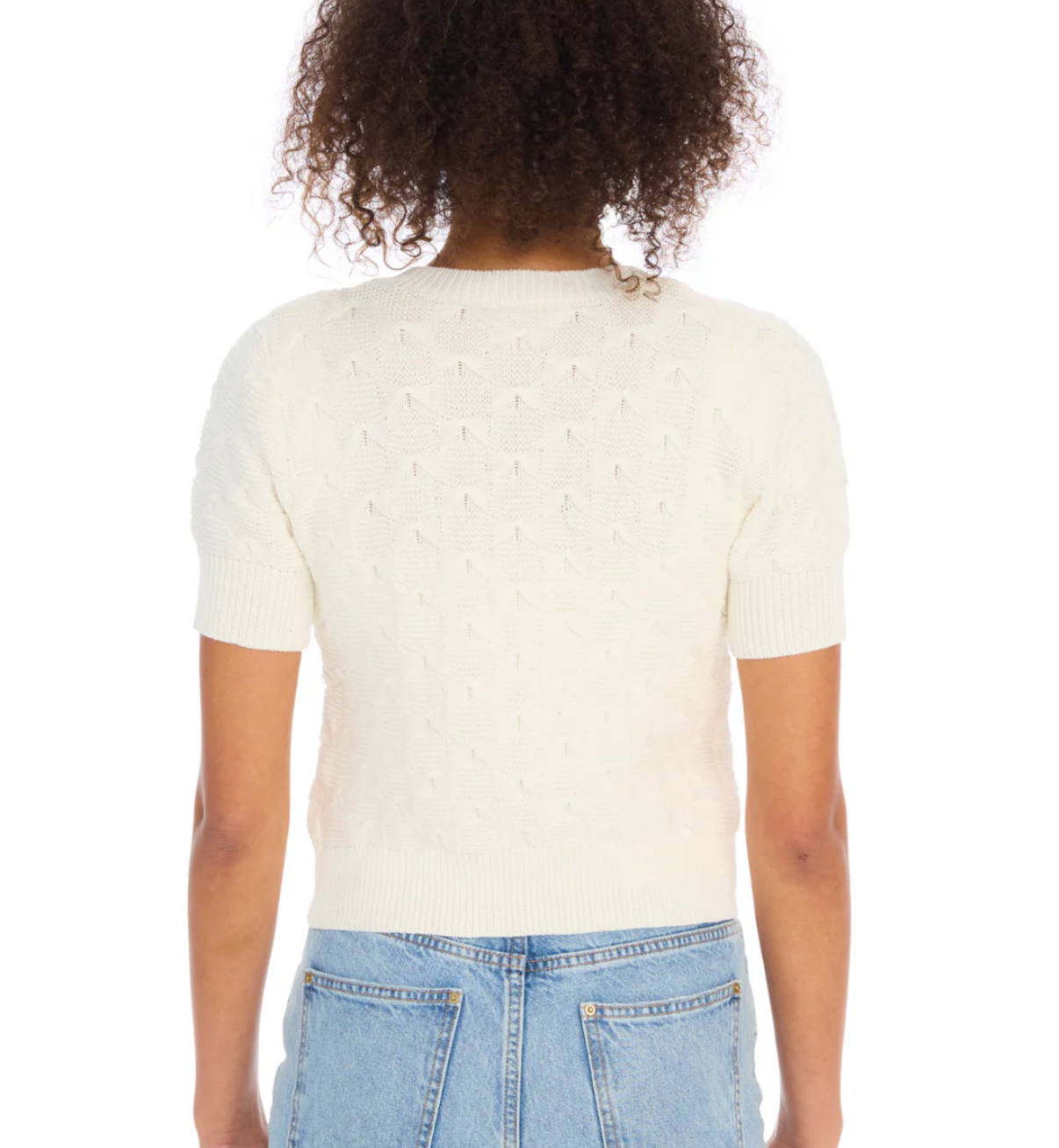 The Effie Cardigan is an instant classic for all year. Designed in a lightweight 100% cotton yarn and features a short sleeve and slim fit throughout the body. Off white neutral goes with everything and is adorned with silver flower buttons for a feminine touch. Make it a matching set layered over the sweetheart tank.