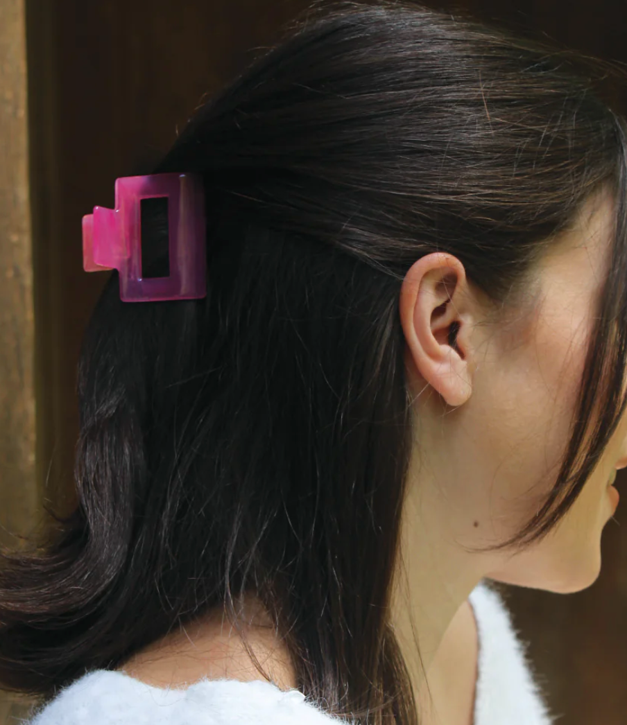 - Understated elegance in a bold, geometric clip. Create your favorite updo with this medium size clip with gorgeous natural marbling.