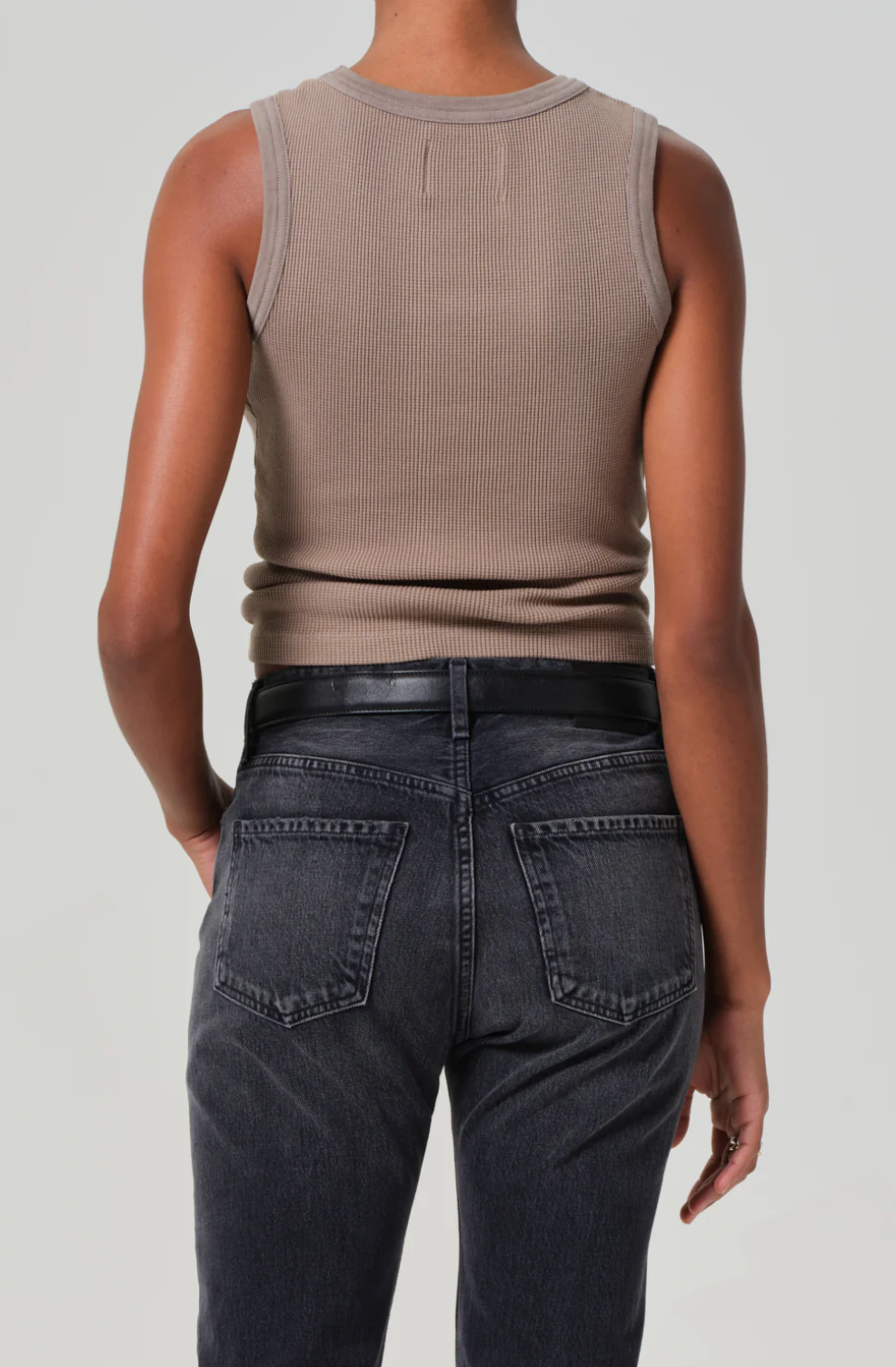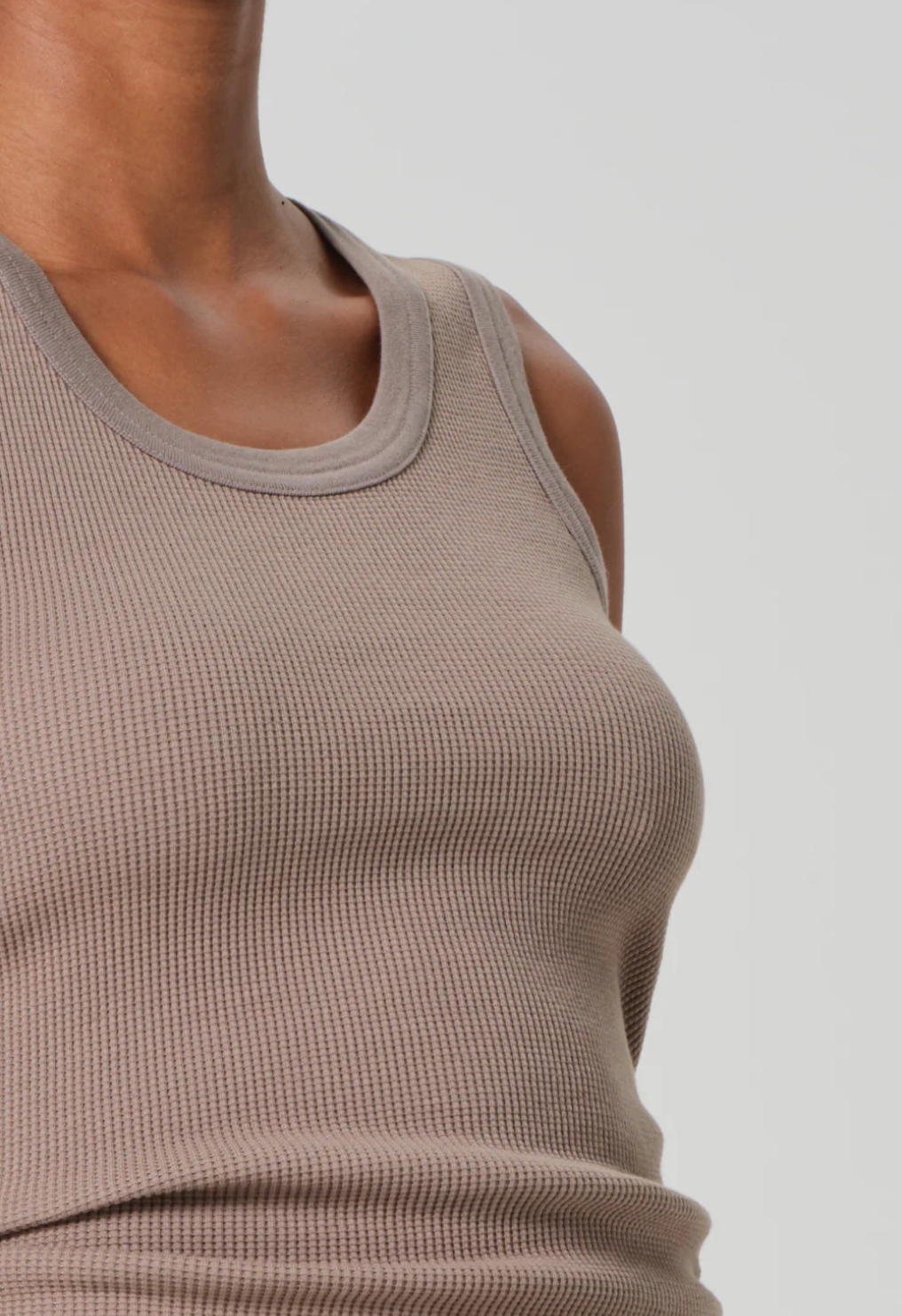 The Inez Tank is a refined take on a classic thermal, crafted from midweight cotton with a soft waffle texture throughout. Designed for a close fit with a clean neckline and minimal finish, it offers easy layering and everyday comfort. Pair it with relaxed denim or tailored trousers for effortless contrast.