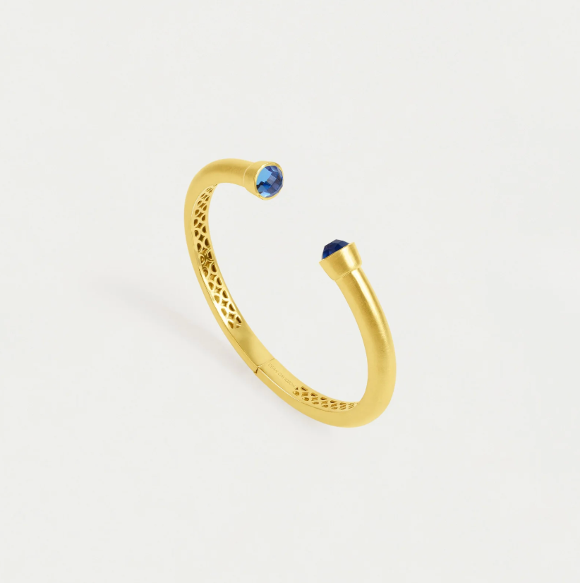 Double the impact with two hand-faceted gemstones, each punctuating the end of a brushed-gold open cuff. Featuring a hidden hinge and lightweight feel, it’s easy to pop on and keep on all day and night.