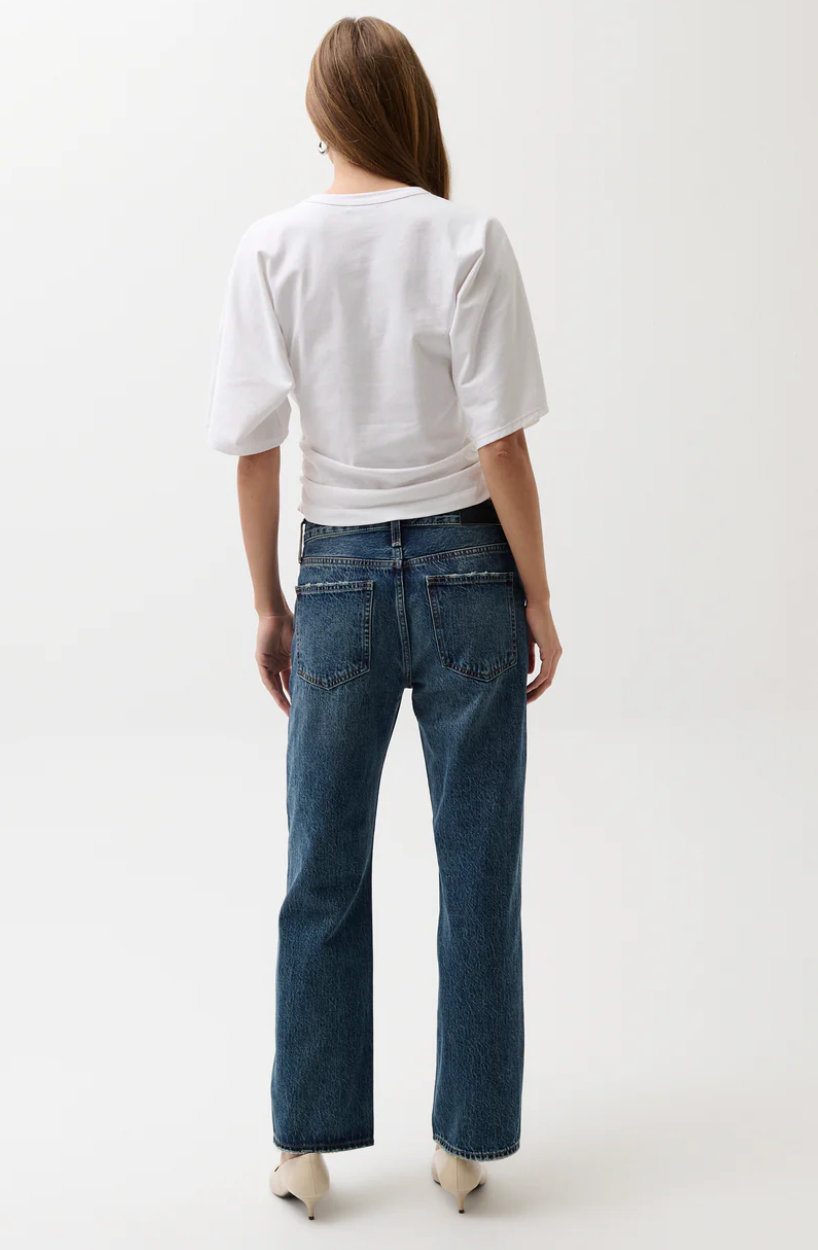 The best-selling jean that understands proportions. Lexi sits at the perfect mid-rise with our signature bowed straight leg, and a subtle curve at the knee that creates dimension without effort. Finished with a 29" inseam, the silhouette tapers to a cropped ankle with a clean hem. Crafted from our rigid denim in Artisan, a rich dark wash with gentle fading around the knees and thighs.