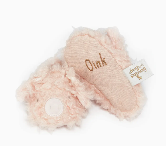 Features Size 0-6 Months Safe for all ages Embroidered details Elastic Band for a snug fit to baby's feet Embroidered "Oink" on the bottom of slipper Packaged in Signature Logo Box Squeaker in the tongue for extra fun play! 100% polyester Adorable Little Piggy slippers with cute curly-q fur! The super soft fabric and elastic band will keep Babys feet warm and stay put thought the day. Comes packaged in a signature gift box, ready for gifting and perfect for a baby shower present! Quite perfectly the best baby bootie to ever hop your way!