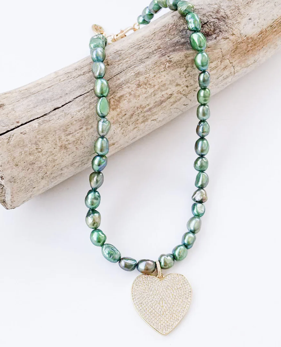 LUXE Pave Heart Pendant on Freshwater Pearls