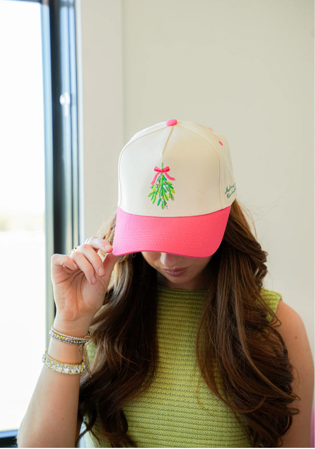 Spread holiday cheer with this adorable canvas cap featuring a playful mistletoe design that's sure to get laughs at every festive gathering. The charming pop of pink adds a fun, modern twist to classic Christmas style, making it the perfect gift for anyone who loves seasonal humor. Whether you're heading to a holiday party or just want to spread festive vibes, this cap brings personality and warmth to your winter wardrobe. Cozy, quirky, and undeniably Instagram-worthy—your new favorite holiday accessory awaits.