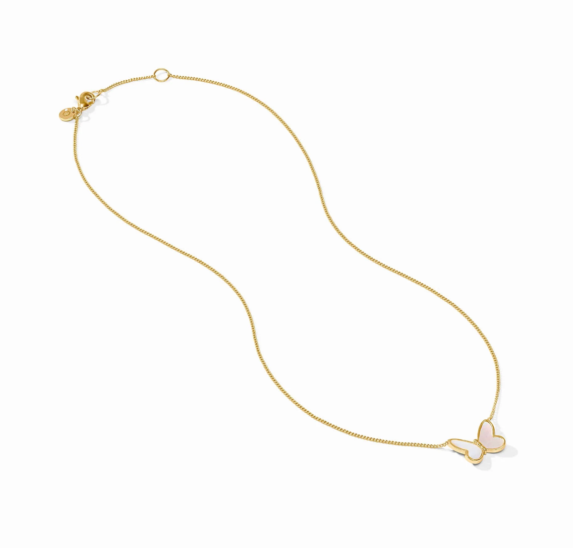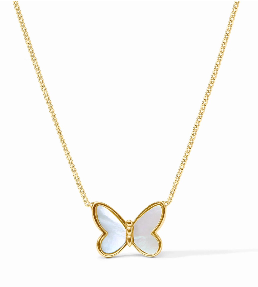 Elevate your everyday style with the Papillon Delicate Necklace, a chic accessory that effortlessly transitions from day to night. Crafted with lustrous mother of pearl, this lightweight piece features an adorable butterfly pendant that catches the light beautifully. Its versatile design pairs seamlessly with any outfit—dress it up for special occasions or layer it casually for understated elegance. Perfect for gifting or treating yourself, this delicate necklace is the timeless piece your jewelry collection has been missing.