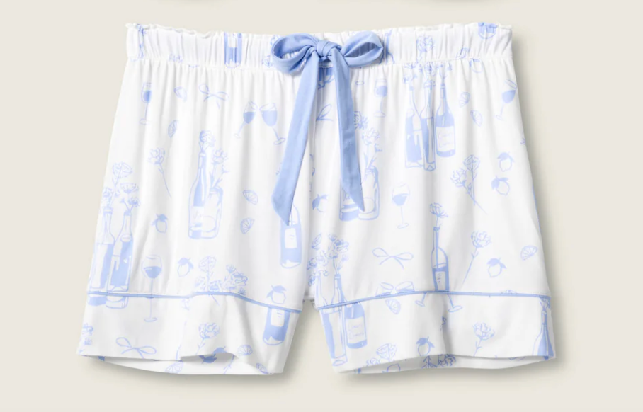 This swingy racerback tank and matching shorts set is straight out of a Parisian dream—decked in a toile-inspired print that mixes delicate florals, fresh lemons, and clinking wine bottles a.k.a your dream Eiffel Tower picnic in lounge form. Crafted from soft modal jersey, the tank features a scoop neckline and racerback for easy comfort, while the shorts offer an elasticized waist with a blue drawstring for easy fit and classic blue piping along the hem for a refined finish—a perfectly fresh, coordinated look for relaxed days and cozy evenings at home.