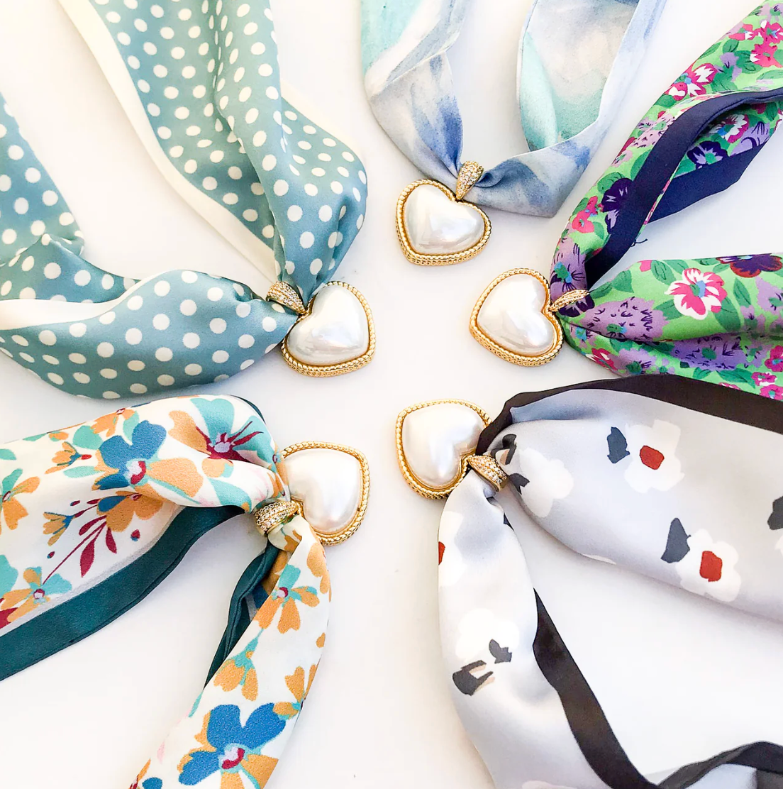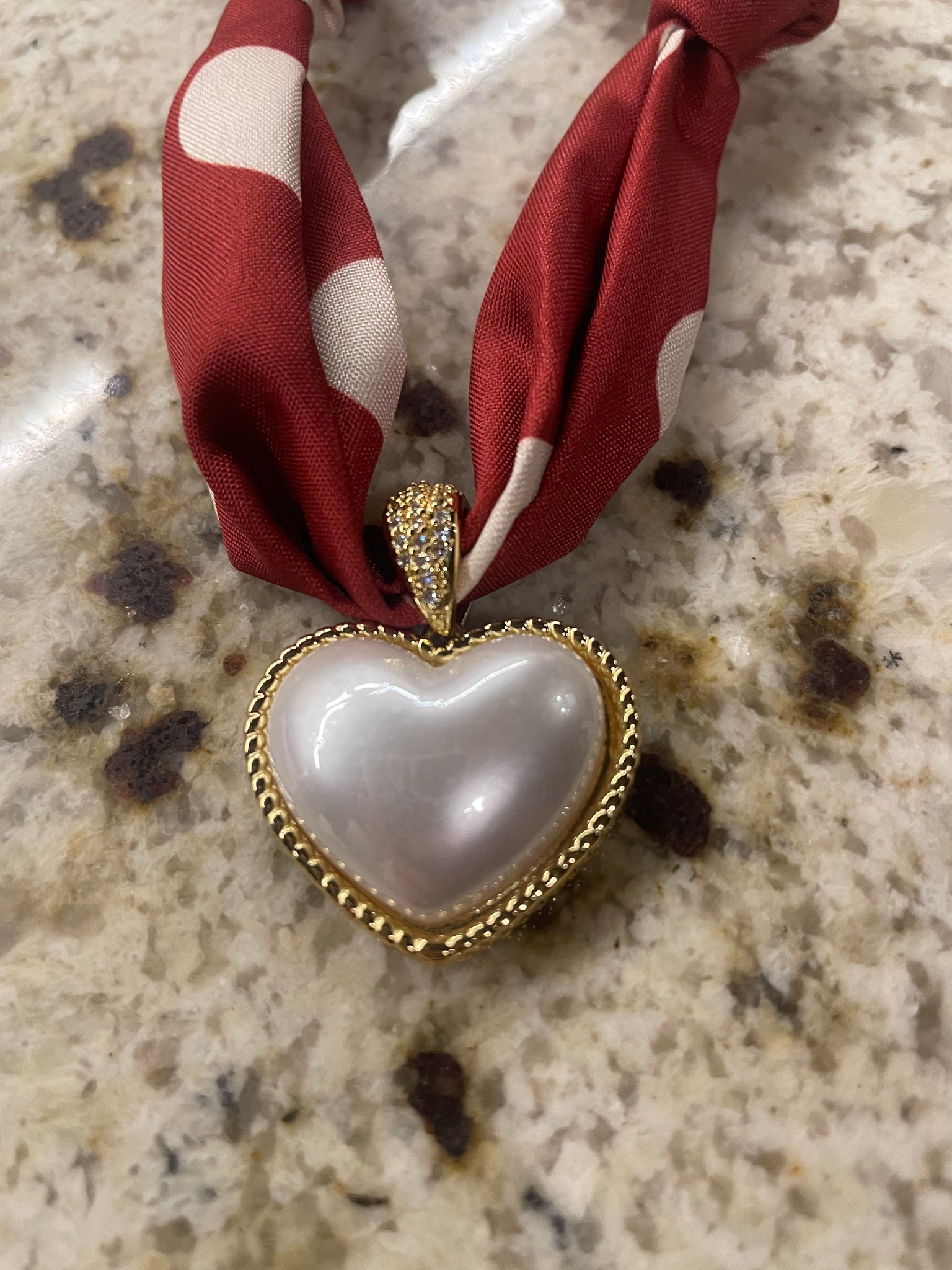 Wrap yourself in silky softness with the Puff Pearl Heart on Scarf Necklace, designed to adjust perfectly to your style. The charming pearl heart adds a playful touch, making it the perfect accessory to brighten up any outfit—whether you're out on the town or cheering at the big game!