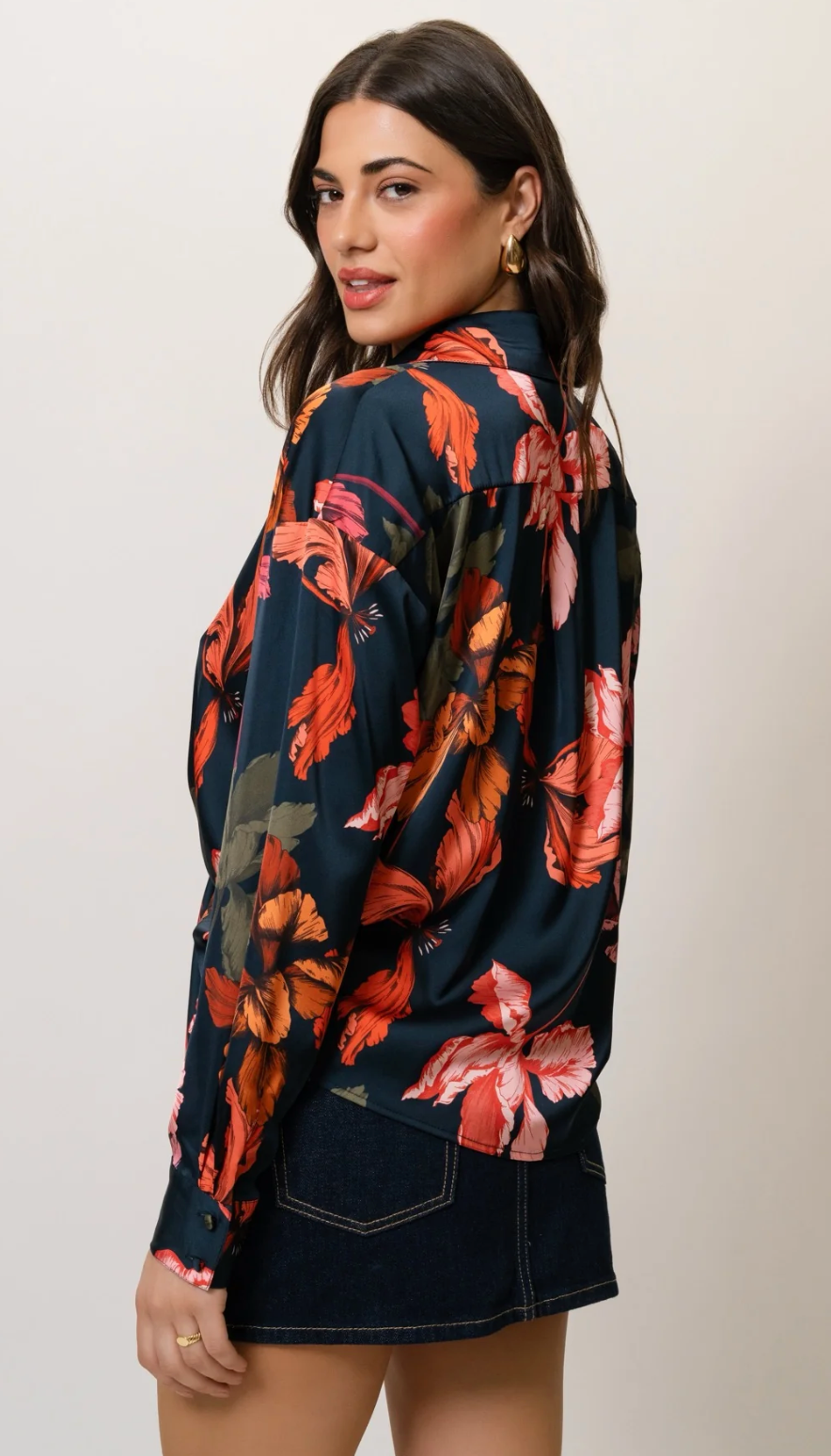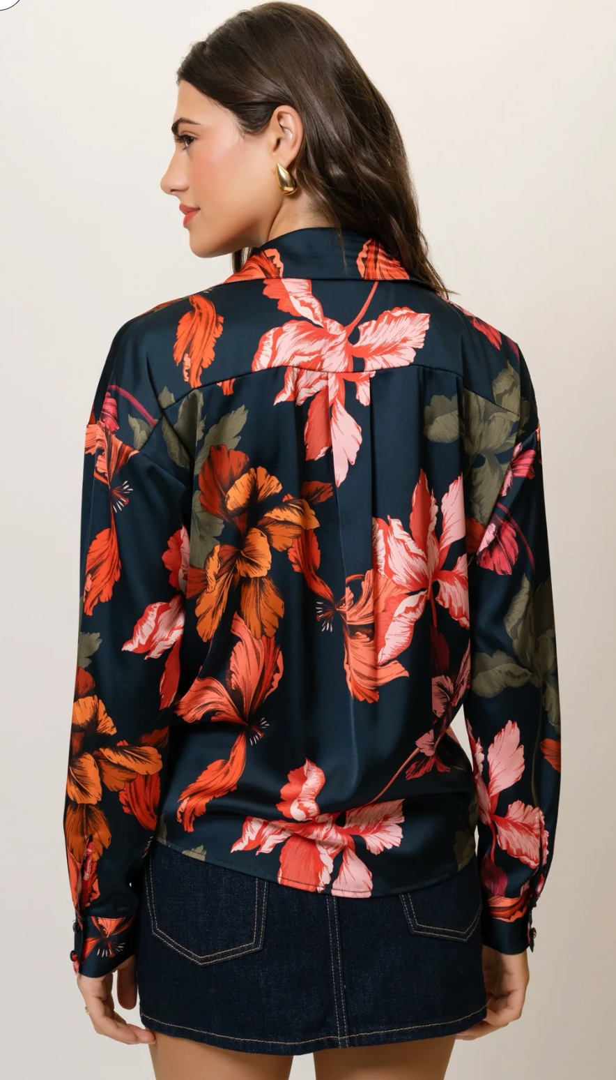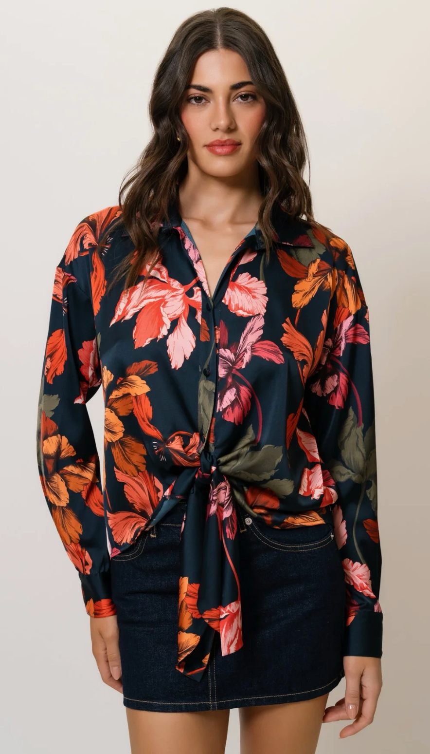 long sleeve tie front button down blouse with a sharp dress collar