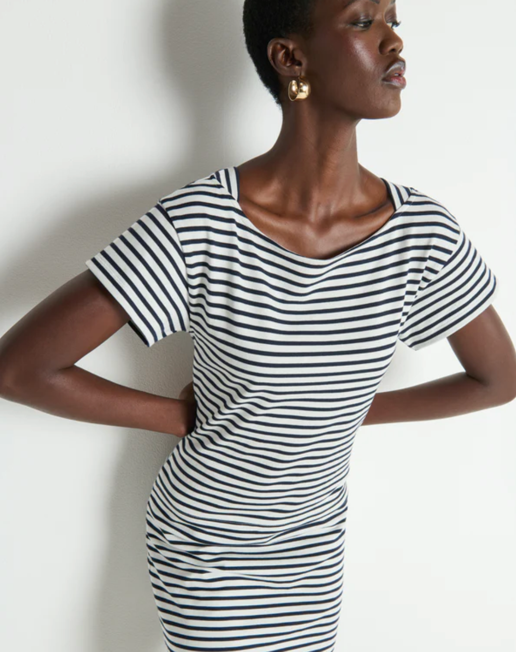 Crafted from 100% heavyweight cotton in our classic signature fit, the Rosie Mini Dress is a go-to for any day. Stripes keep it timeless, while the relaxed silhouette makes it easy to style.