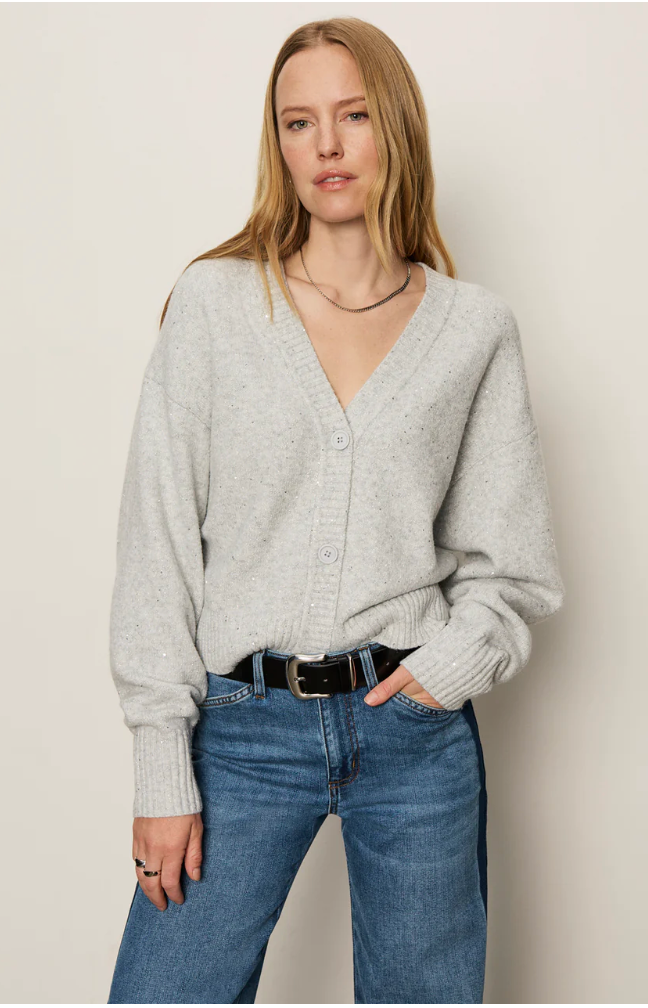 Elevate your holiday wardrobe with the Shimmer Cardi in Heather Grey—the versatile piece you've been waiting for. This adorable cardigan transitions effortlessly from day to night, whether you're heading to festive gatherings or cozy evenings at home. The subtle shimmer adds just the right touch of sparkle without overwhelming your look, making it the perfect layering essential for any occasion. Soft, flattering, and endlessly wearable, this must-have cardi deserves a spot in your closet this season.