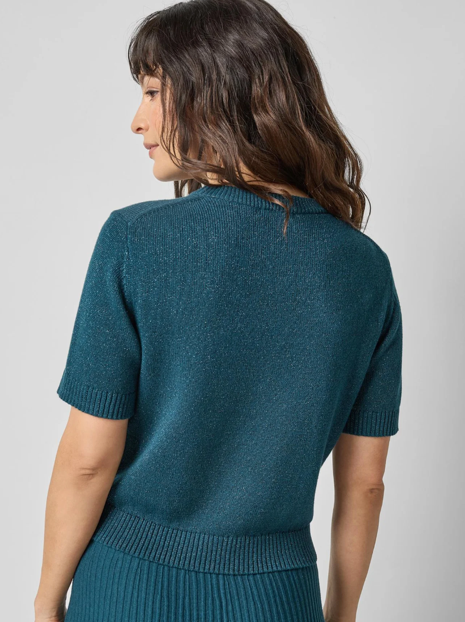 Short Sleeve Sparkle Sweater in deep sea