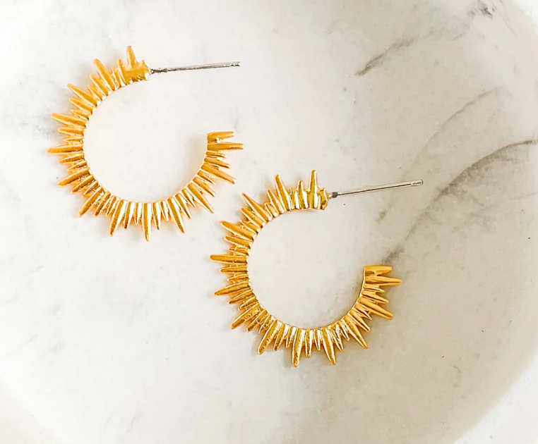 Add a playful sparkle to any outfit with the Starburst Hoops. These charming earrings offer a fun, eye-catching design that effortlessly elevates your look, making them perfect for both casual days and special occasions. Embrace a touch of whimsy and let your style shine.