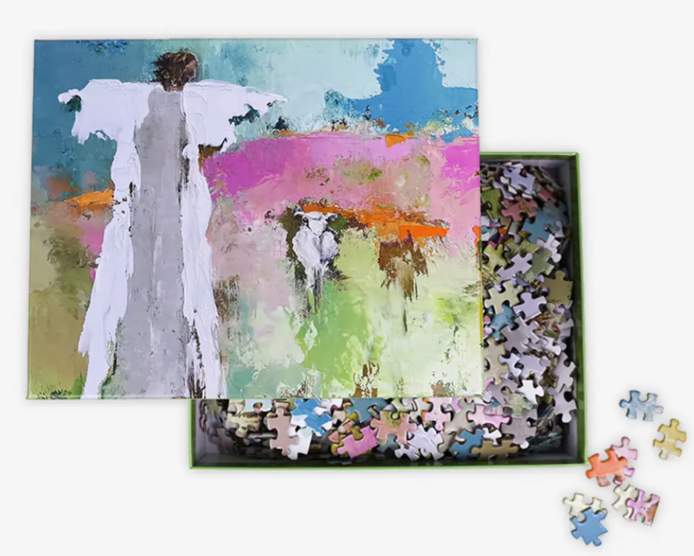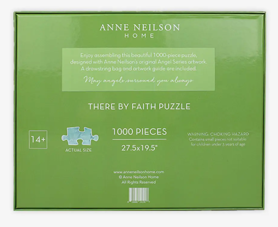 Enjoy assembling this beautiful 1,000-piece puzzle, designed with Anne Neilson's original Angel Series artwork. A drawstring bag and artwork guide are included. "There By Faith" by artist Anne Neilson 1,000 Piece Jigsaw Puzzle Finished Puzzle Size: 27.5"x19.5" Recommended Age: 14+ Years