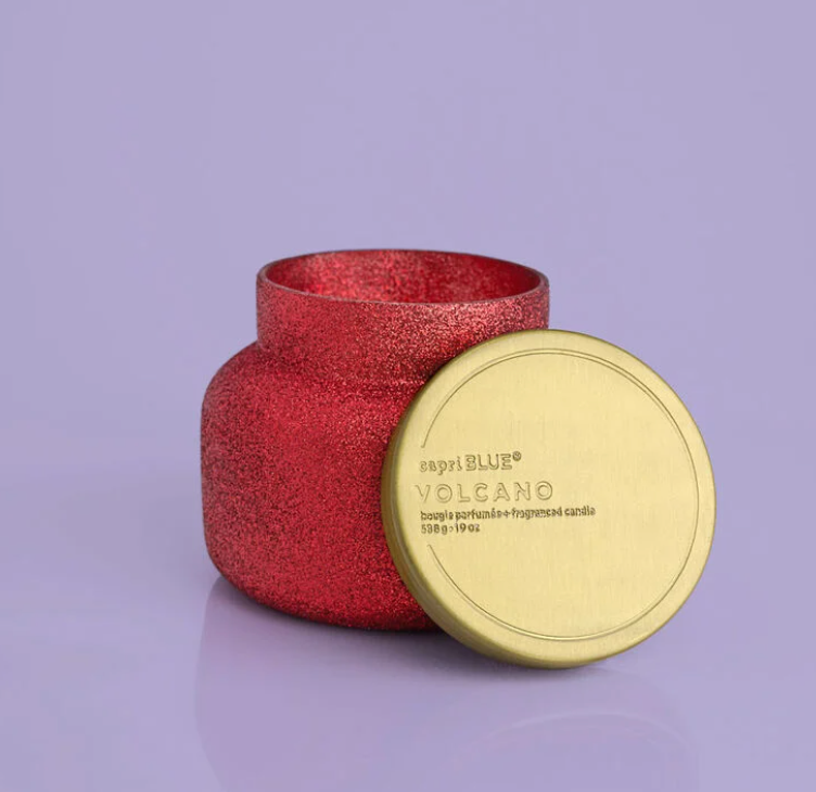 Turn up the glitz with this beautiful Volcano Glam Signature jar. Fill the room with the perfect year-round Volcano fragrance. This iconic fragrance combined with a red glitter makes for the holiday gift we've all been waiting for.