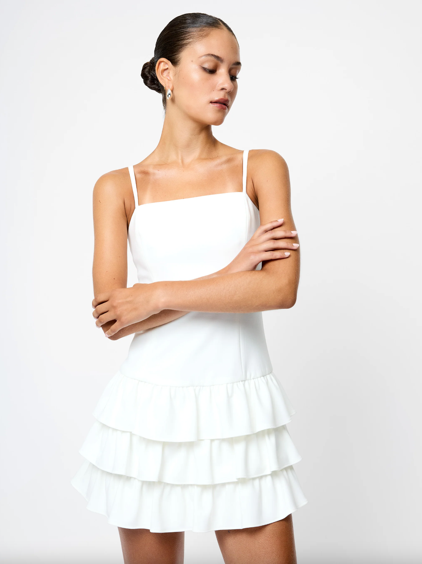 Romantic yet refined, the Whisper Tiered Ruffle Mini Dress brings effortless sophistication to every occasion. Designed with delicate straps and graceful layered ruffles, this dress balances structure and movement for a flattering, feminine finish. From dinner dates to cocktail hours, it’s the one you’ll reach for again and again.