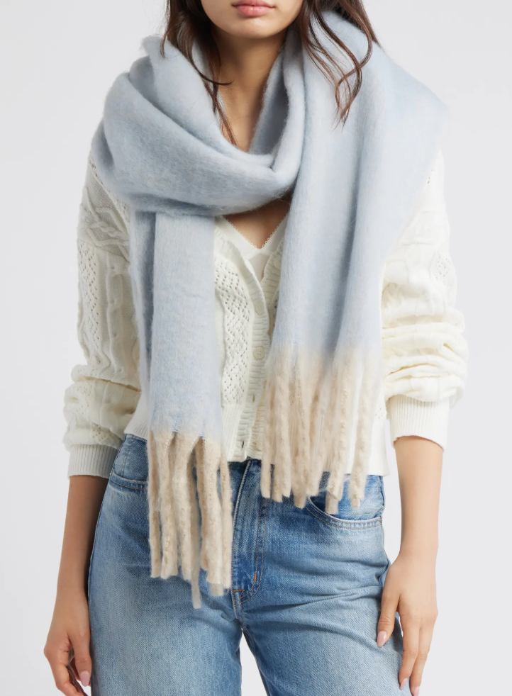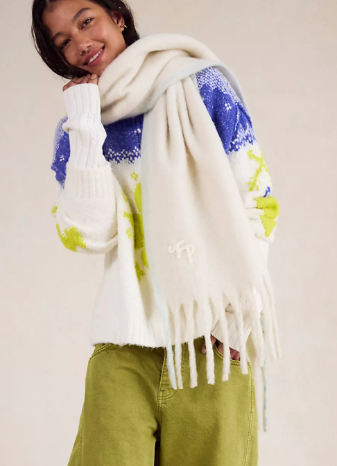 So cute and cozy, this timeless blanket scarf is sure to be an essential piece in your winter wardrobe rotation featured in a super soft knit fabrication with defined fringe at trim and FP embroidered logo at bottom for the sweetest finishing touch.